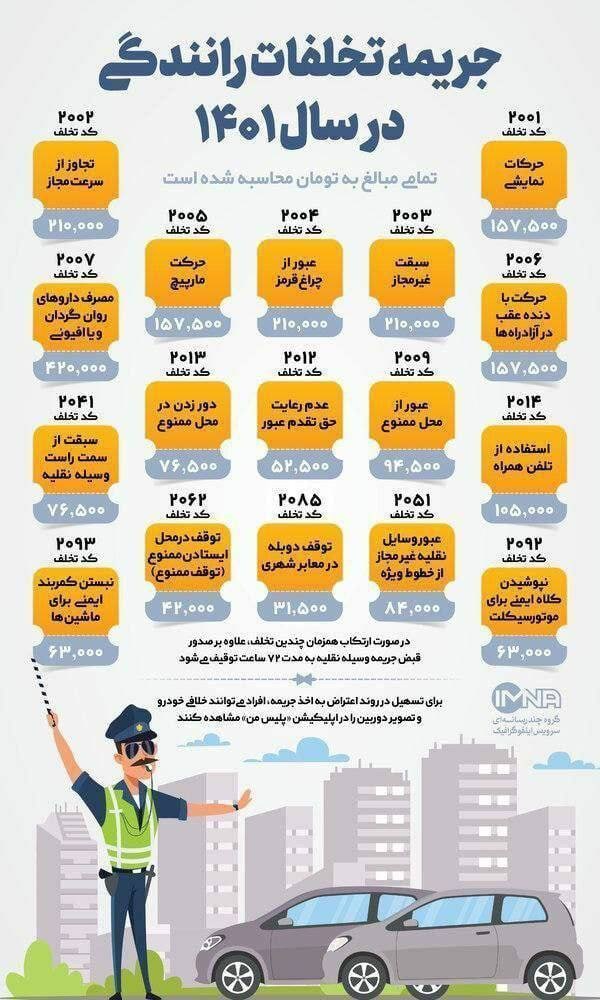 جریمە تخلفات رانندگی در سال ١۴٠١