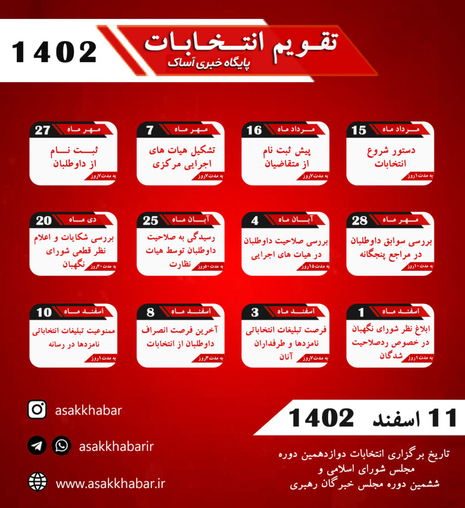 تقویم دوازدهمین دوره انتخابات مجلس شورای اسلامی