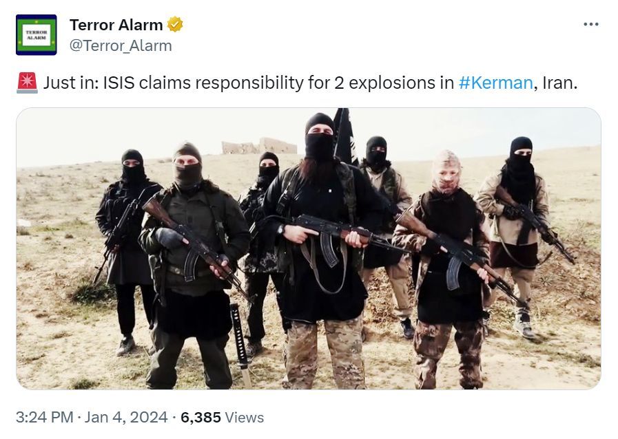 گروه تروریستی داعش مسئولیت انفجارهای تروریستی روز چهارشنبه در کرمان را برعهده گرفته است.