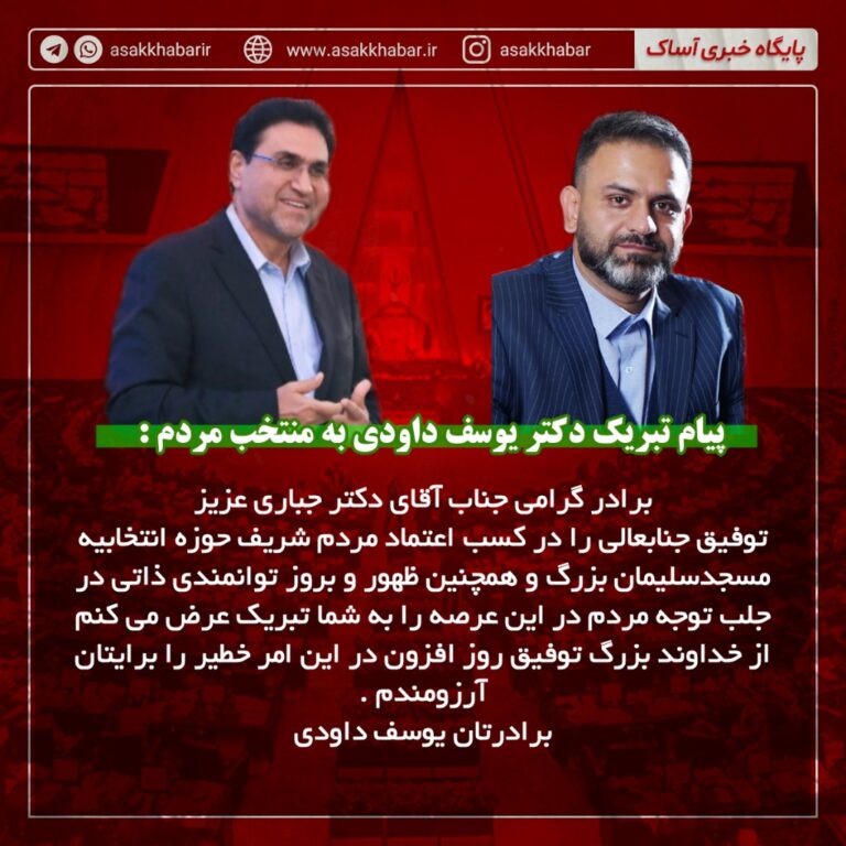 پیام تبریک دکتر یوسف داودی به منتخب مردم در مجلس شورای اسلامی