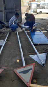 نصب و جانمایی تابلوها و تجهیزات ترافیکی جهت ایمن سازی معابر توسط شهرداری مسجدسلیمان