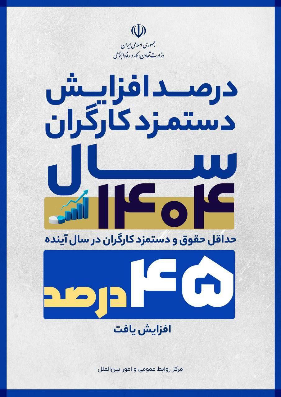 حداقل حقوق و دستمزد کارگران با تصویب شورای عالی کار در سال آینده به میزان ۴۵ درصد افزایش یافت.