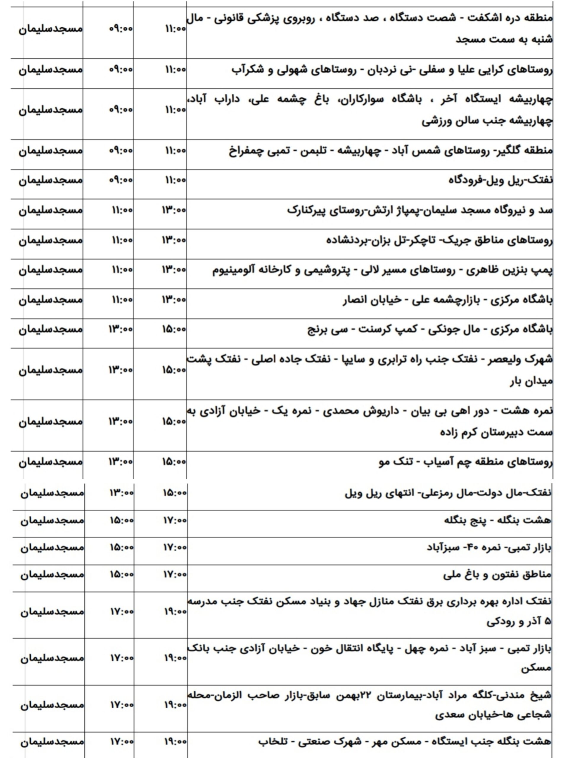 اعلام لیست خاموشی‌های برق در شهرستان مسجدسلیمان
